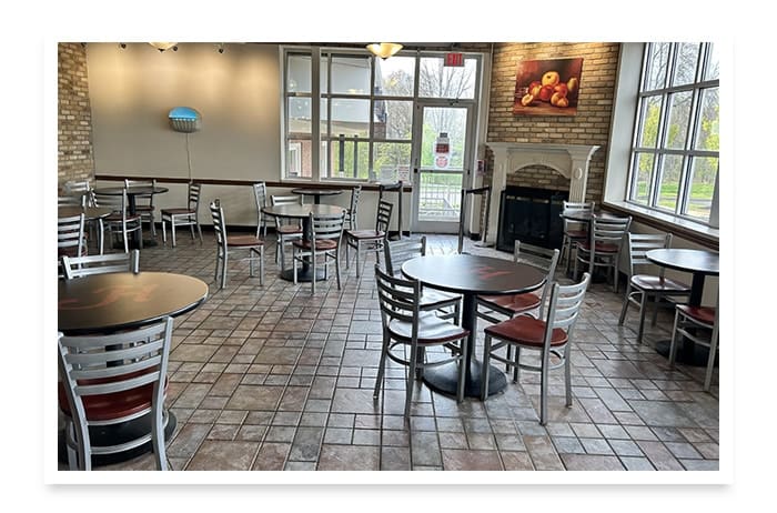 We have seating on our main level and second level Terrace for over 180 guests, complete with TV’s and fireplaces, creating a comfortable atmosphere for all!