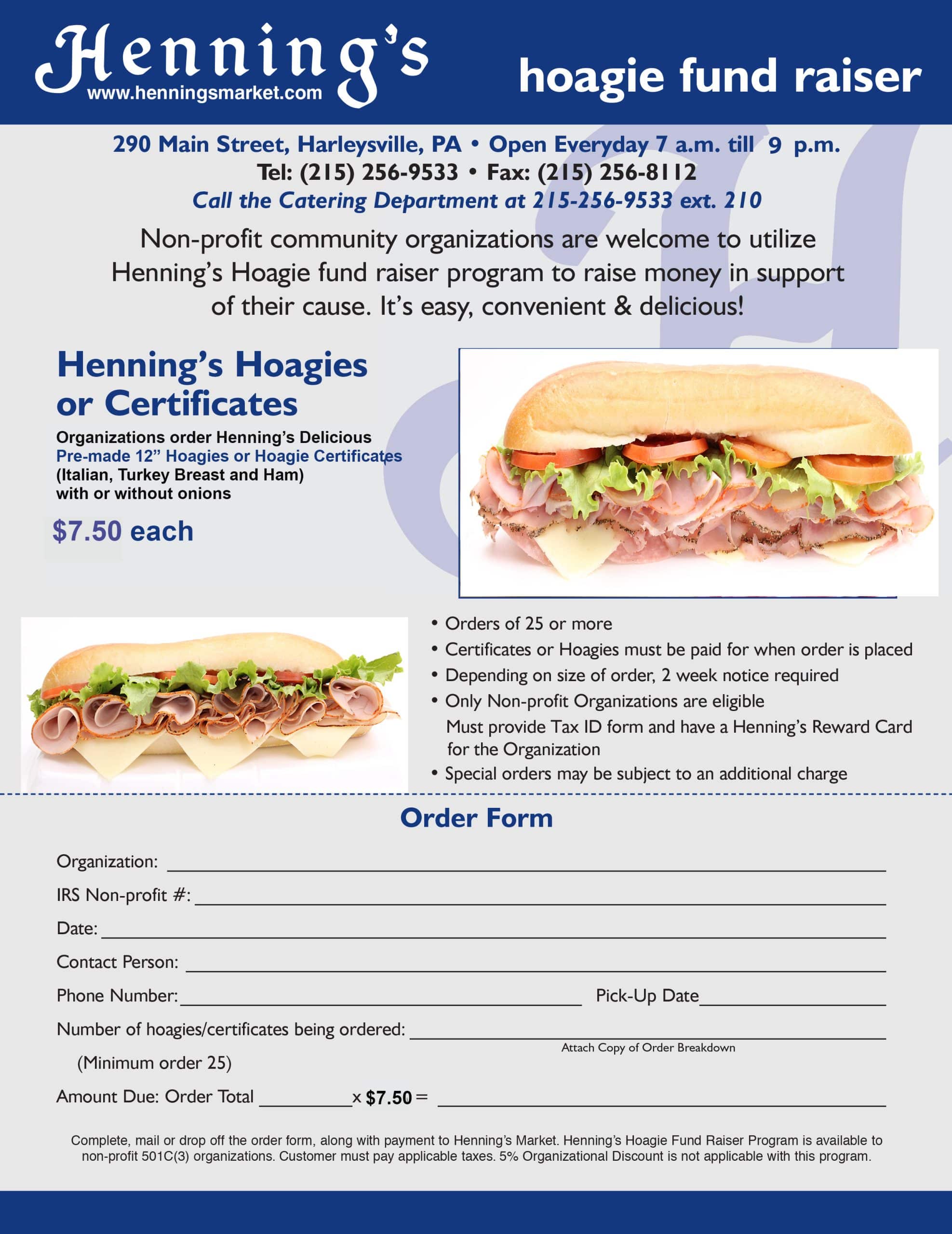 Henning's Market is committed to giving back to the communities we serve. Non-profit and community organizations interested in a donation for their cause or a donation for a charitable fundraising event, can drop off the request in-store at customer service or e-mail vickibooz@henningsmarket.com.